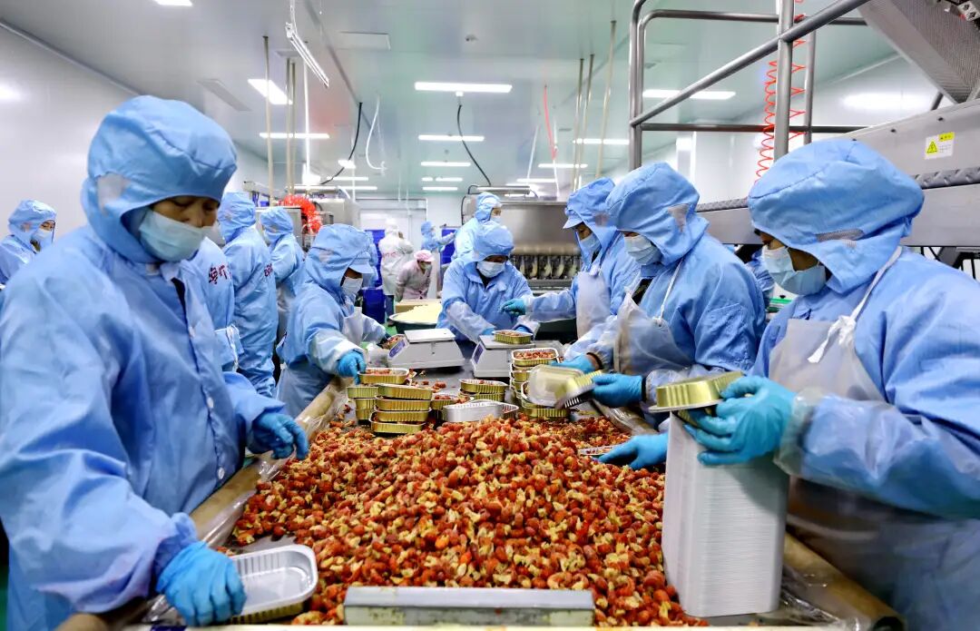 彭泽县投资1.5亿元建成了智能化初加工工厂和精深加工工厂。截至目前,该加工厂一天能生产10万盒成品小龙虾。