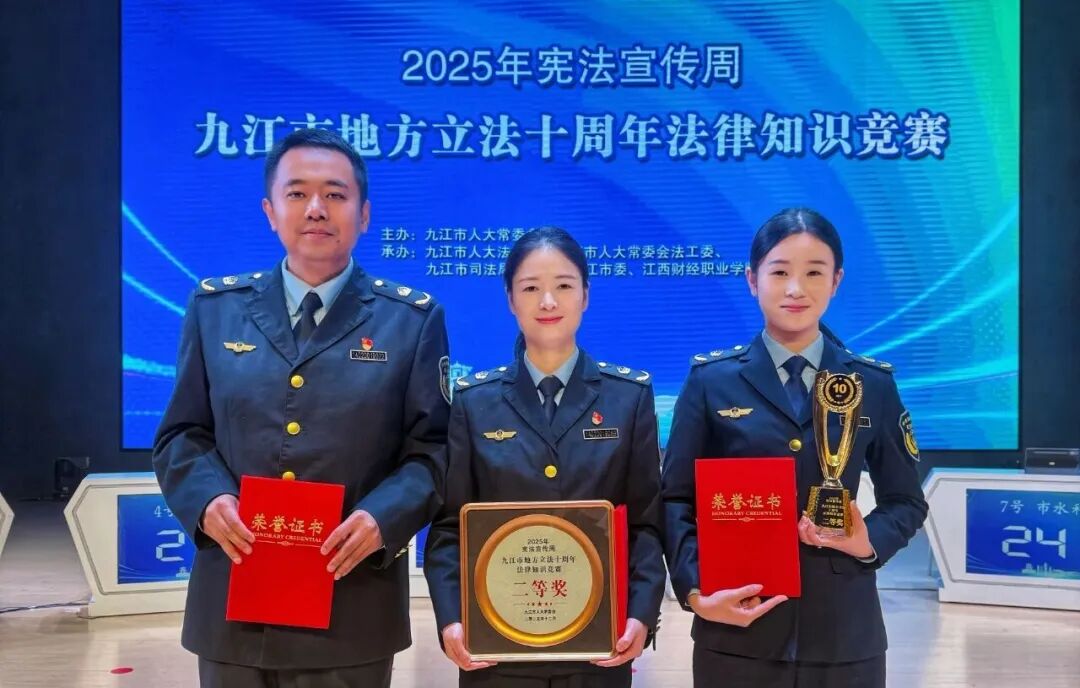 12月2日至3日,由九江市人大常委会主办的2025年宪法宣传周·九江市地方立法十周年法律知识竞赛活动在江西财经职业学院八里湖校区成功举办,我局选派的3名市农业综合行政执法支队队员,凭借扎实的法律功底、高效的团队协作与稳定的临场发挥,从全市47支代表队中脱颖而出、跻身前十强,荣获决赛二等奖,充分展现了新时代农业综合行政执法人员精湛的专业素养和昂扬的精神风貌。