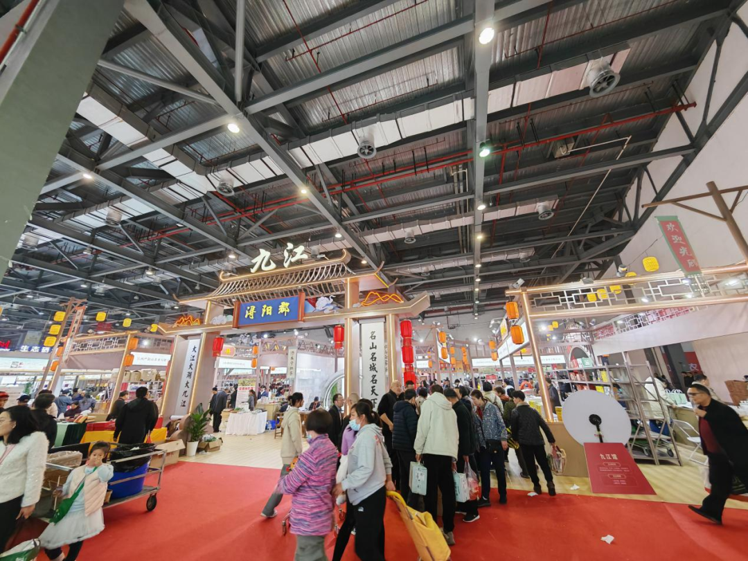 九江展区汇聚了来自全市各地的特色风物:庐山云雾茶清香袭人,修水宁红茶醇厚甘润,湖口螃蟹膏腴肉满,永修香米、共青板鸭等特色产品琳琅满目,集中展现了九江生态产区绿色、优质的发展理念。众多市民与采购商驻足品鉴、洽谈,现场气氛热烈。