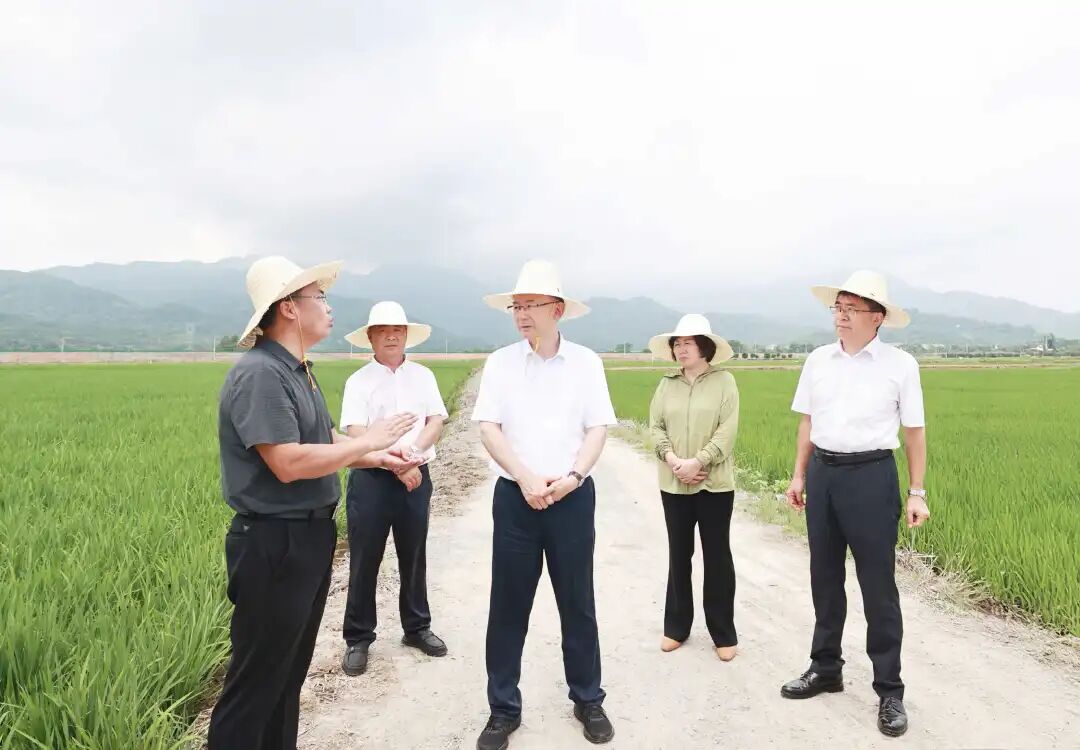 滩溪镇麻籍村早稻田里稻浪翻滚、机声隆隆,一派丰收景象。刘文华走进田间,与种粮大户深入交谈,关切询问早稻收成、收购价格、种粮收益及惠农政策落实等情况。他指出,要抓好夏收夏种关键环节,加强农机调度和服务保障,确保颗粒归仓;密切关注市场行情,严格执行收购政策,切实保障种粮农民合理收益,保护和调动农民种粮积极性。云山企业集团东新农场水稻大面积单产提升创建基地连片水稻郁郁葱葱,正进入分蘖期。刘文华察看水稻长势,认真听取江西农大“中稻超高产关键技术集成与示范”课题情况介绍,要求强化科技赋能,持续推动粮食单产和品质双突破,积极推广高产高效技术模式,扎实推进高标准农田建设和管护,不断挖掘粮食增产潜力。